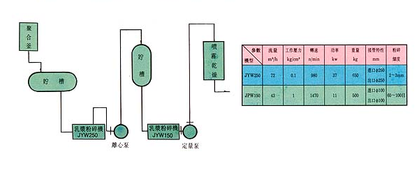 在聚氯乙烯糊狀樹(shù)脂生產(chǎn)線中使用JYW250,JPW150乳漿粉碎機(jī),可使聚合所產(chǎn)生的大量塊狀樹(shù)脂被粉碎成產(chǎn)品,從而大大提高了糊樹(shù)脂得率,同時(shí),還避免在下道工序噴霧干燥中,經(jīng)常發(fā)生的堵料現(xiàn)象,對(duì)提高產(chǎn)品質(zhì)量,簡(jiǎn)化工藝流程,降低能耗,及生產(chǎn)成本方面有顯著經(jīng)濟(jì)效益。
